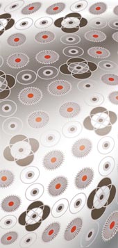 Die handgezeichneten Motive und Farbkompositionen werden am Computer zu abstrahierten Ornamenten, grafischen Bildern und flächendeckenden Rapporten collagiert.